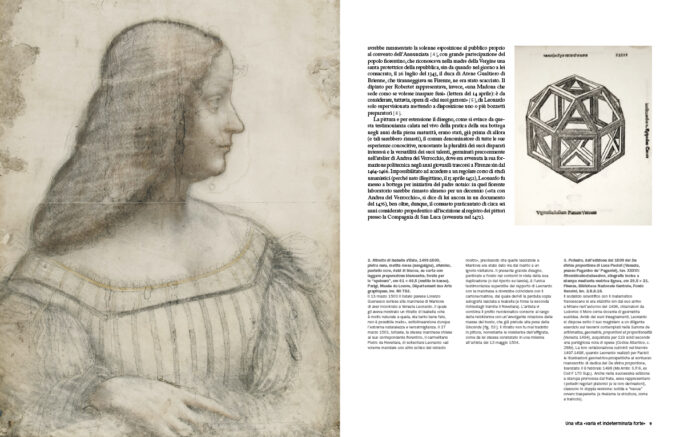 An essential biography introduces the reader to Marco Versiero’s pages, matched with 61 detailed pictures. The pictures, proposing a selection not only of Leonardo’s paintings but also of his drawings, furnished with extended captions, tell the itinerary of the genius from the years of his apprenticeship in Verrocchio’s workshop till the days of his maturity.