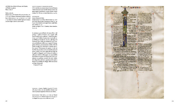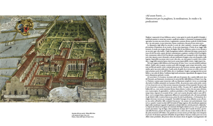 Il catalogo della mostra presenta un’ampia selezione dei manoscritti più antichi conservati nella biblioteca, miniati tra l’XI e il XIII secolo. Si tratta di testi biblici, commenti dei Padri della Chiesa, vite dei Santi ma anche preziosi esemplari miniati di libri di diritto, che riflettono l’attività del tribunale dell’inquisizione che aveva sede presso il convento fin dalla metà del Duecento. Nella prima parte del catalogo trovano posto saggi dedicati a riassumere la storia dei manoscritti delineando il contesto nel quale si colloca la loro acquisizione da parte del convento, e a commentare i caratteri formali delle miniature in essi contenute nell’ambito della storia della decorazione libraria dallXI al XIII secolo; nella seconda parte si trova una schedatura analitica dei manoscritti presentati, condotta secondo i criteri stabiliti per la collana dei Manoscritti datati d’Italia.