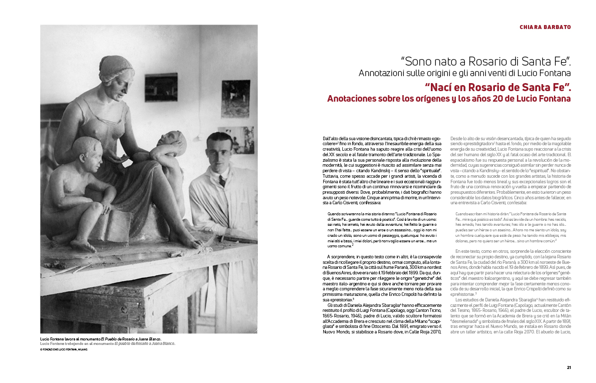 Il catalogo Lucio Fontana. Los Orígenes si incentra sul grande protagonista dell’arte del XX secolo, volendo insistere con particolare enfasi sulla convivenza di Italia e Argentina nel suo percorso d’uomo e d’artista, ovvero due patrie e allo stesso tempo due immaginari.